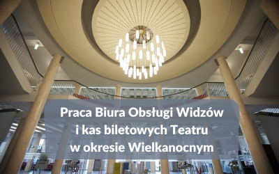 Drodzy Widzowie, uprzejmie informujemy, że w piątek (3 kwietnia) Biuro Obsługi Widzów będzie nieczynne, a kasy biletowe w dniach 3 i 4 kwietnia (piątek–sobota) pozostaną zamknięte. Zachęcamy do ...