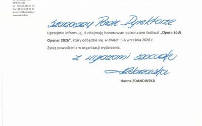 Uprzejmie informujemy, że Prezydent Miasta Łodzi Hanna Zdanowska objęła honorowym patronatem festiwal „Opera Łódź Opener 2026”, który odbędzie się w dniach 5–6 września 2026 roku.